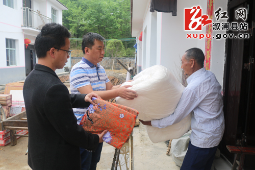 贫困户米久东是长丰村9组的贫困户,整个组都陆续搬离,剩下他一户居住在偏远的山坡上,2016年通过易地搬迁政策搬迁到乡集中安置点。他接过被子激动的说:“感谢党的好政策,让我住上了新房,还帮助我生活起居。”
