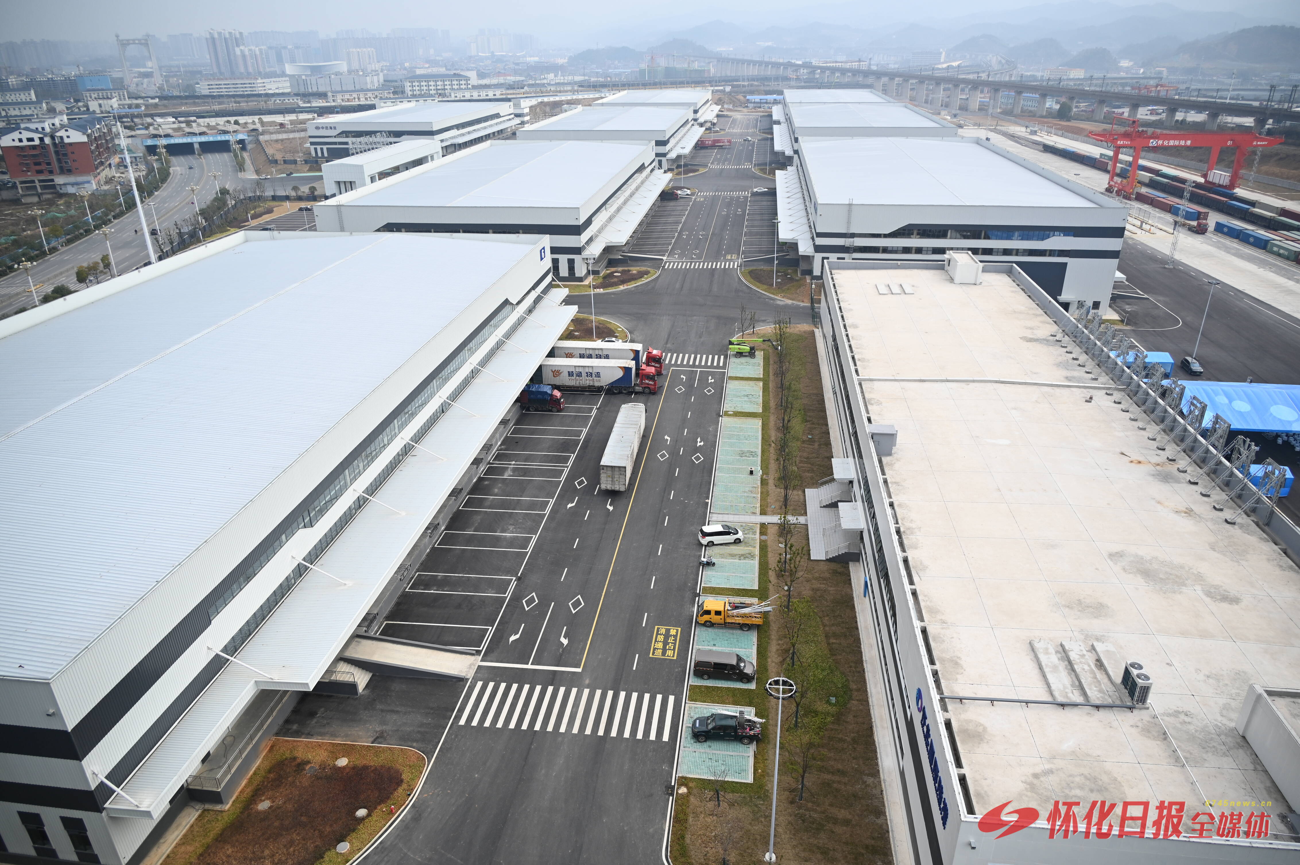 (怀化国际陆港多式联运中心俯拍图 以上照片均为怀化日报全媒体记者 张卓 摄)
