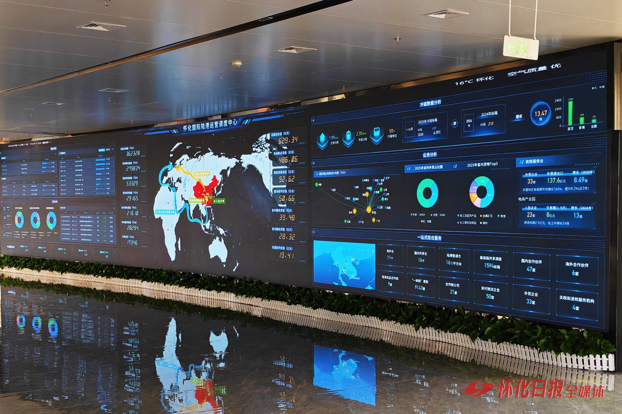 “这就是我们即将启用的‘智慧大脑’——怀化国际陆港多式联运智能运营平台。”周军介绍,平台整合了铁路、公路、海关、港口、货代等多方数据,具备智能调度、路径优化、状态追踪、异常预警等功能。“未来,货物从怀化出发,经铁路至广西北部湾,再转海运至东南亚,全程可实现可视化、可追踪、可调控。”
