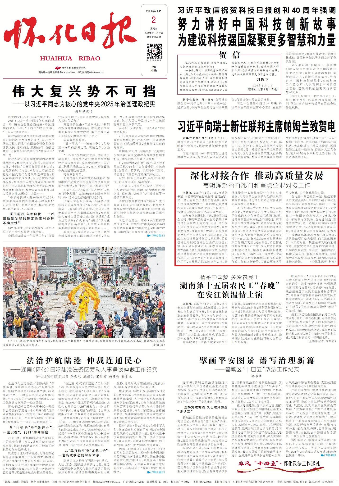 怀化日报全媒体讯2025年12月31日,市委副书记、市长韦朝晖在省林业局、省司法厅、三一集团有限公司进行工作会谈,就深入贯彻落实党的二十届四中全会精神和省委、省政府部署要求,开展重点工作对接,加快推动怀化高质量发展。