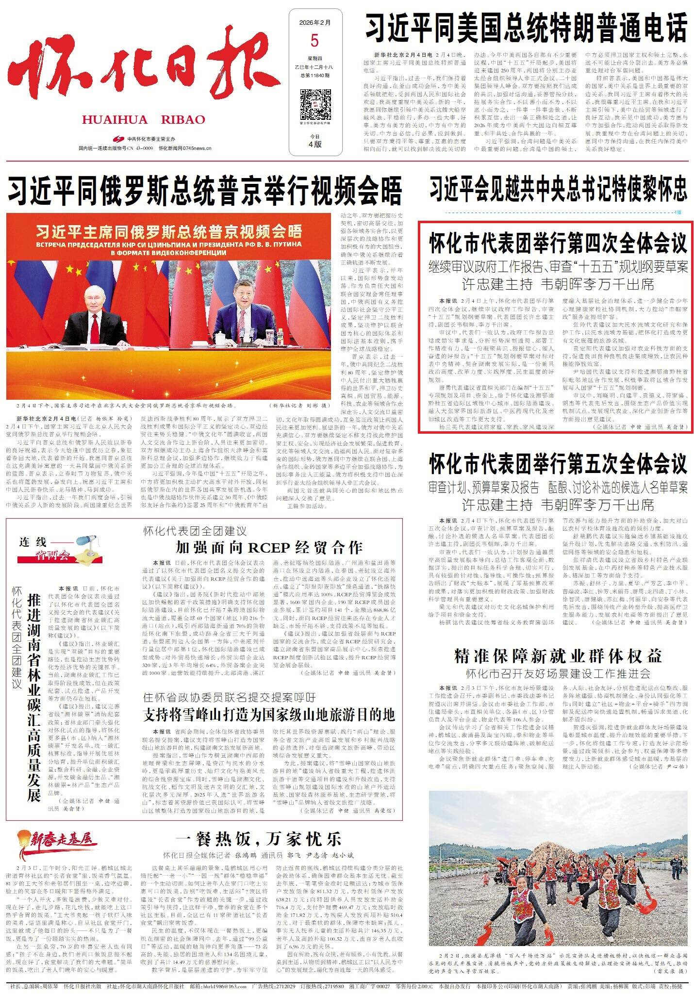 怀化市代表团举行第四次全体会议