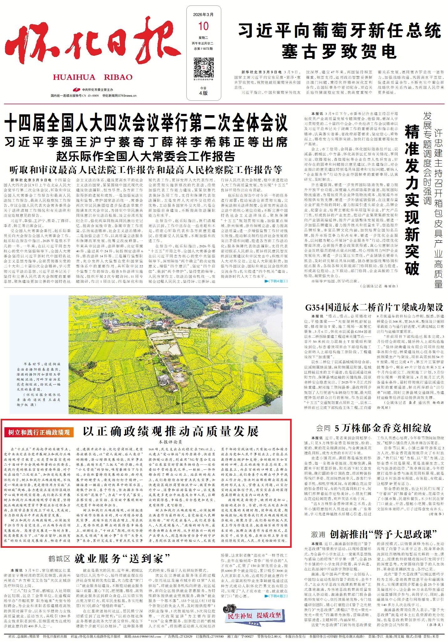 在“十五五”开局起步的关键节点,党中央决定在全党开展树立和践行正确政绩观学习教育,这是贯彻落实党的二十届四中全会战略部署的必然要求,是践行党的根本宗旨的重要举措。对于处在接续“二次创业”、加快追赶发展的怀化而言,树立和践行正确政绩观,不仅是一项政治任务,更是持续用力实施“五新四城”战略、奋力建设五省边际区域性中心城市的现实需要。我们要扎实开展树立和践行正确政绩观学习教育,坚持把正确政绩观贯穿干事创业全过程各方面,在深学真查实改上下功夫、见成效,全力推动高水平开放高质量发展。