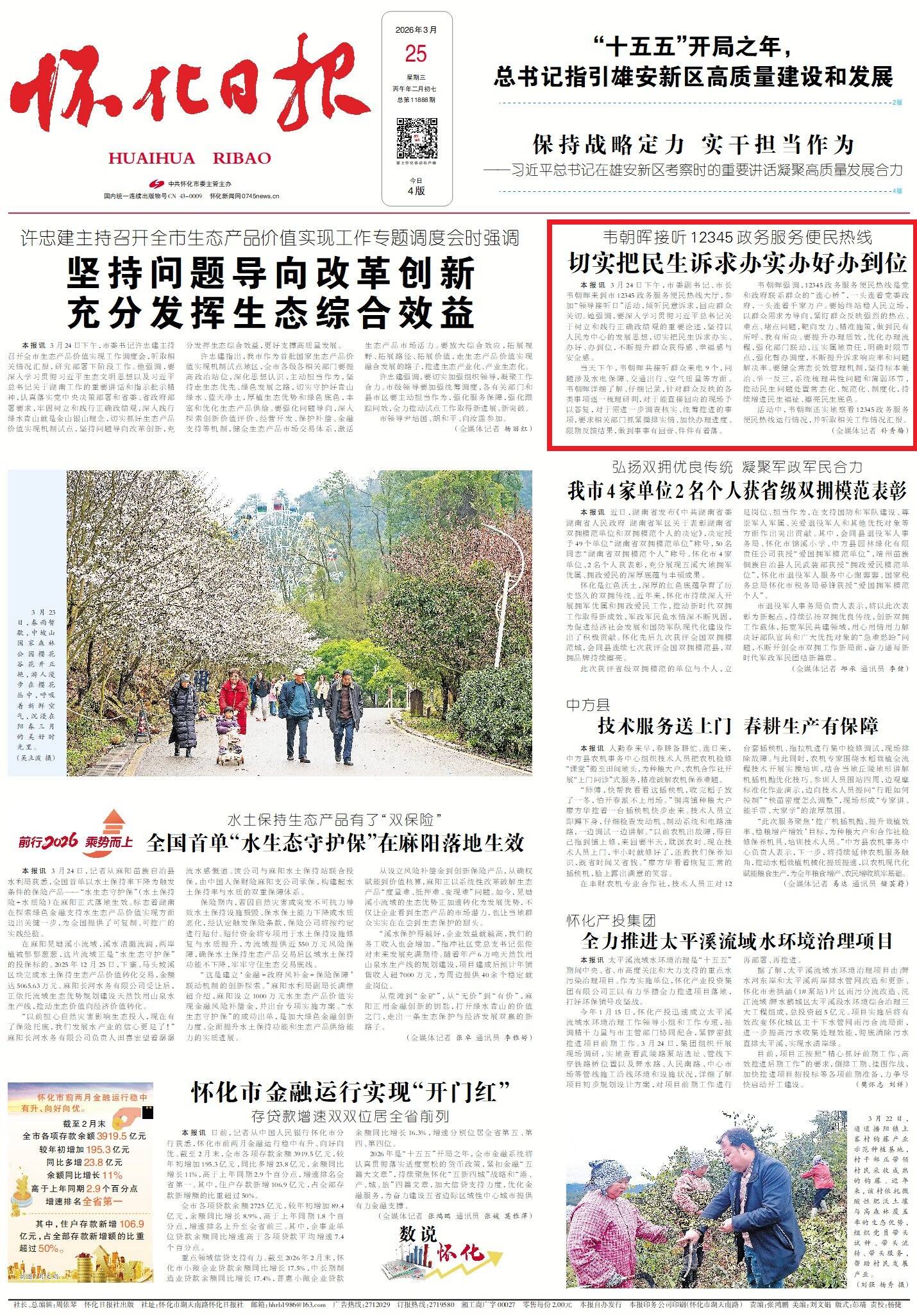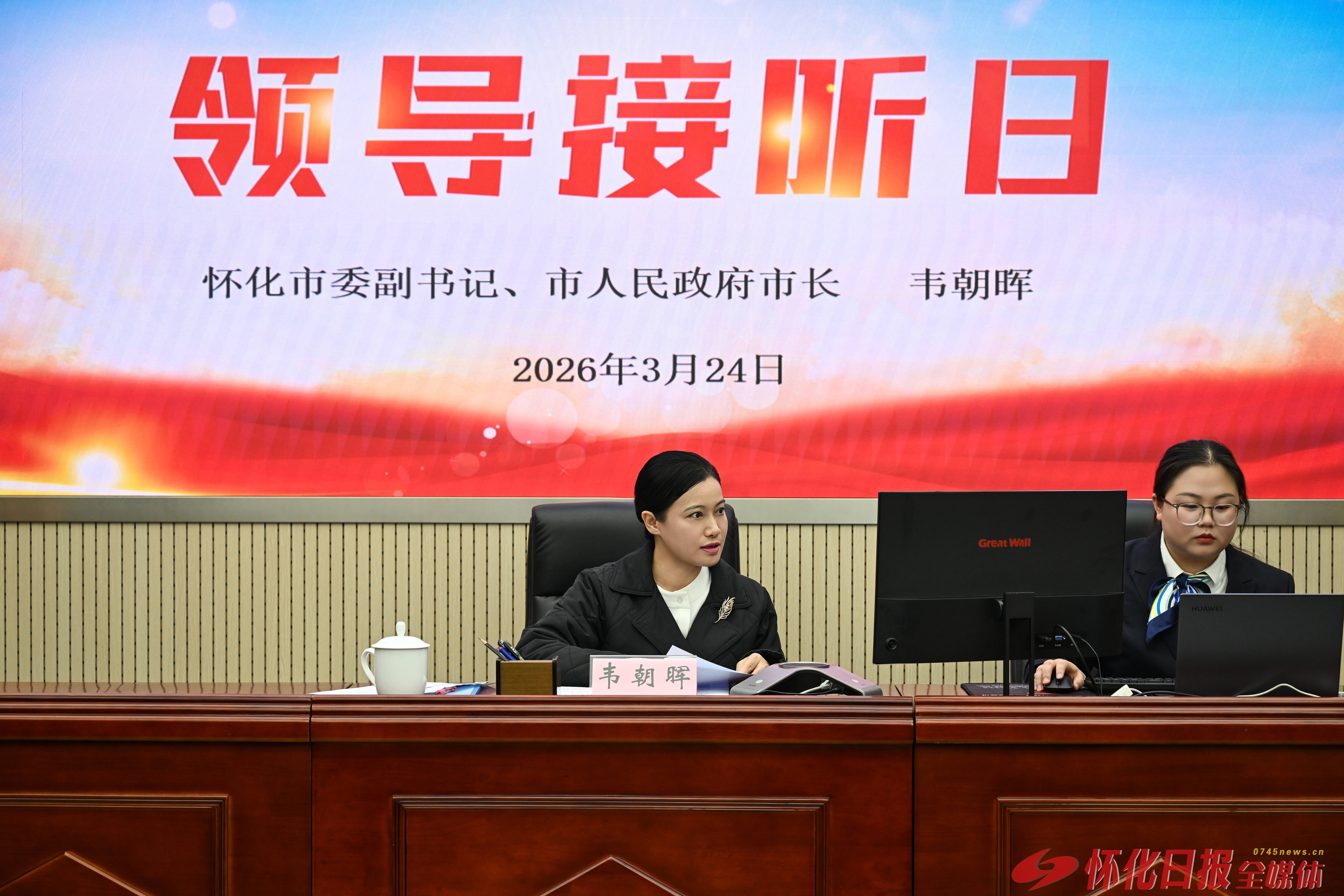 (3月24日下午,市委副书记、市长韦朝晖来到市12345政务服务便民热线大厅,参加“领导接听日”活动,倾听民意诉求,回应群众关切。怀化日报全媒体记者 吴涛 摄)