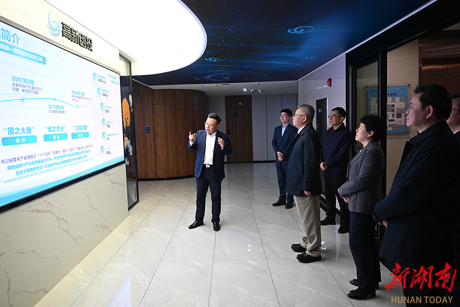 湖南财信金融控股集团有限公司是金芙蓉产业引导、科技创新和重大项目三大母基金管理人。来到该公司,沈晓明详细察看金芙蓉投资基金产品矩阵,了解基金运营管理、运作机制、企业培育等情况,要求找准定位,充分发挥政府投资基金引导作用,合理统筹基金布局,填补市场空白,吸引带动更多社会资本投资。湖南湘江新区国有资本投资有限公司旗下湘江基金小镇已引进千余家基金企业,并集聚了一批创新创业项目。沈晓明来到企业了解湘江基金小镇建设、股权投资等情况,鼓励持续营造良好金融生态,吸引更多风险投资基金集聚,更好助力大学生创新创业。在湖南高新创业投资集团有限公司、湖南兴湘投资控股集团有限公司,沈晓明详细了解企业基金投资运营和助力科技成果转化、地方特色产业发展等情况,指出要聚焦主责主业,突出特色优势,以高质量金融服务现代化产业体系建设。