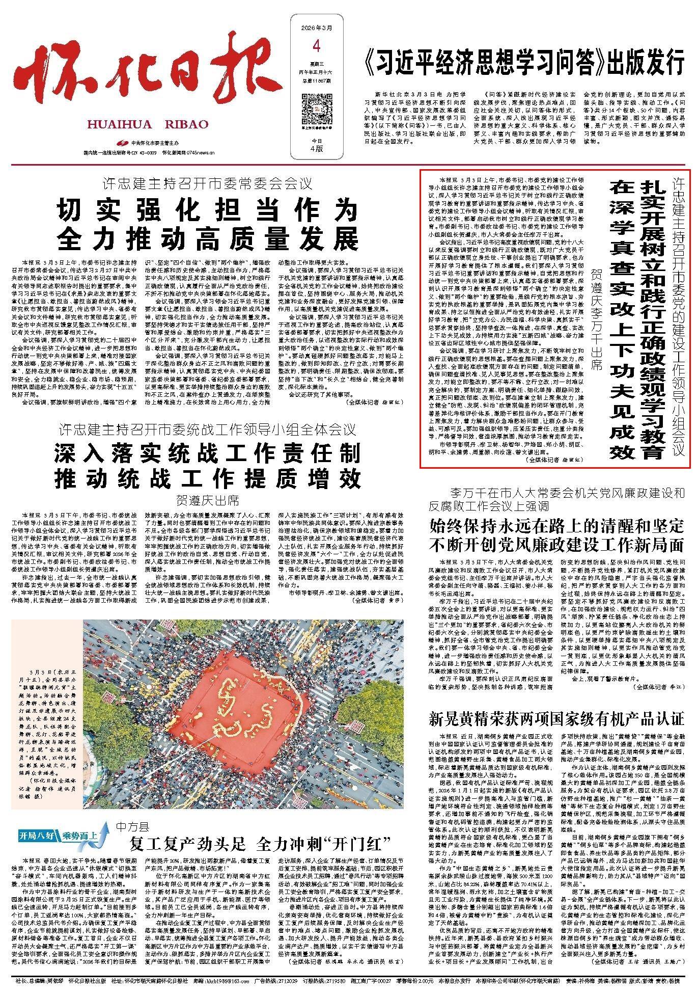 (3月3日上午,市委书记、市委党的建设工作领导小组组长许忠建主持召开市委党的建设工作领导小组会议。怀化日报全媒体记者 彭军 摄)