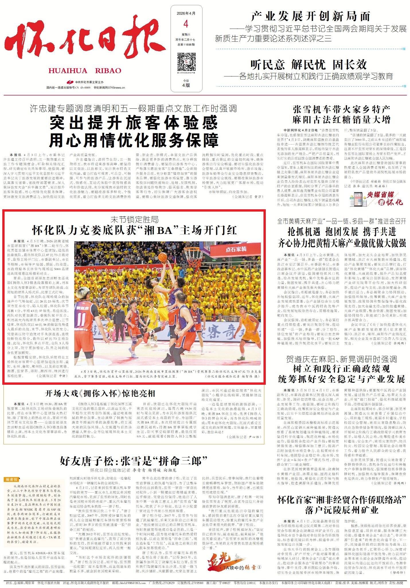 怀化日报全媒体讯4月3日晚,2026湖南省城市篮球联赛(“湘BA”)第二轮举行,怀化男篮坐镇市体育中心篮球馆,迎战劲旅娄底队,最终怀化队以87比73击败对手,取得主场开门红。市委副书记、市长韦朝晖,市领导尹培国、胡臣、向汝莲,市政府秘书长林华与现场近5000名球迷共同观看这场精彩对决。