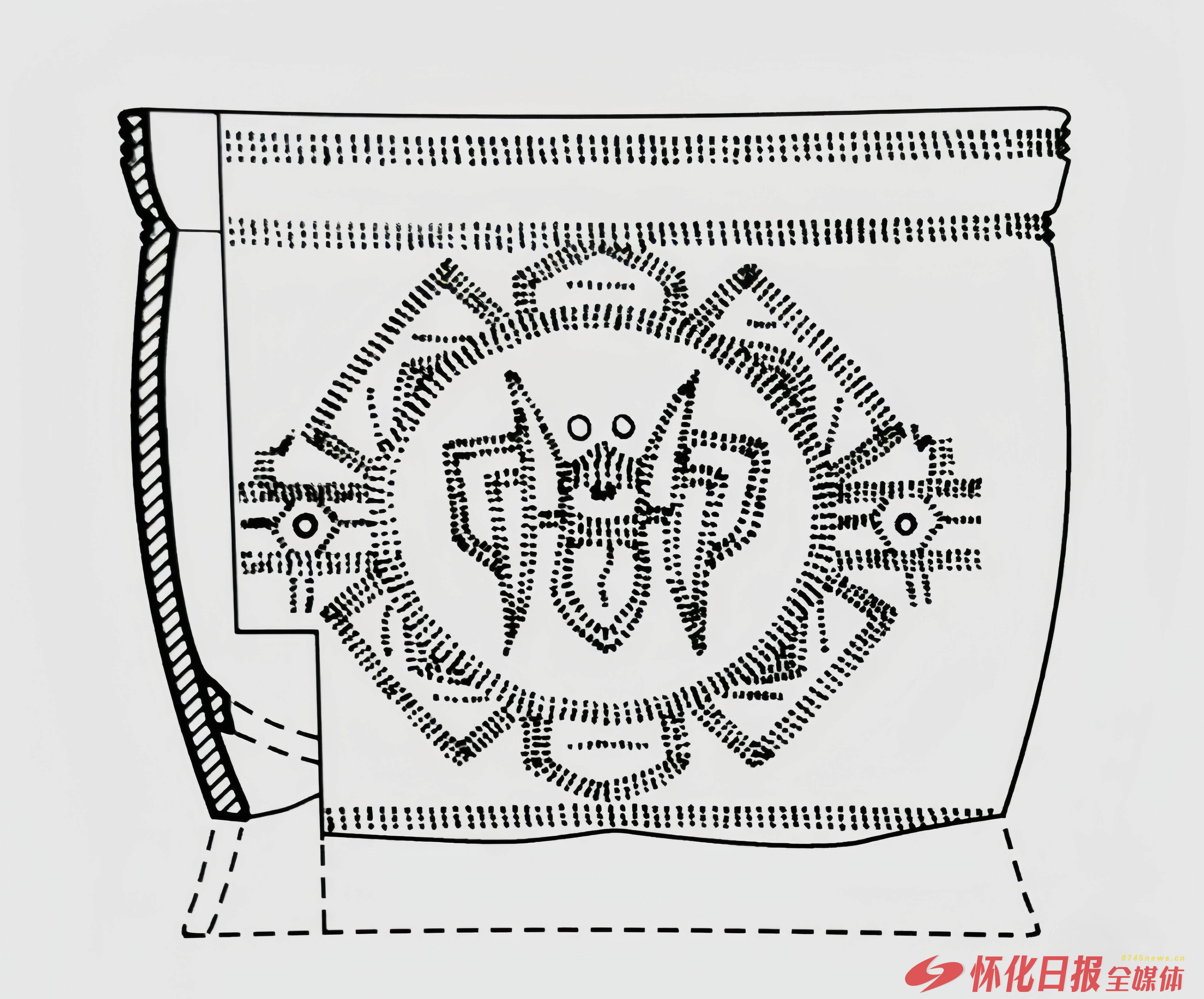 更令人惊叹的,是陶罐上奇特的獠牙兽面纹。一只张开巨口的神兽,露出锋利的獠牙,双眼圆睁如铜铃,周围环绕着太阳纹和星象纹。