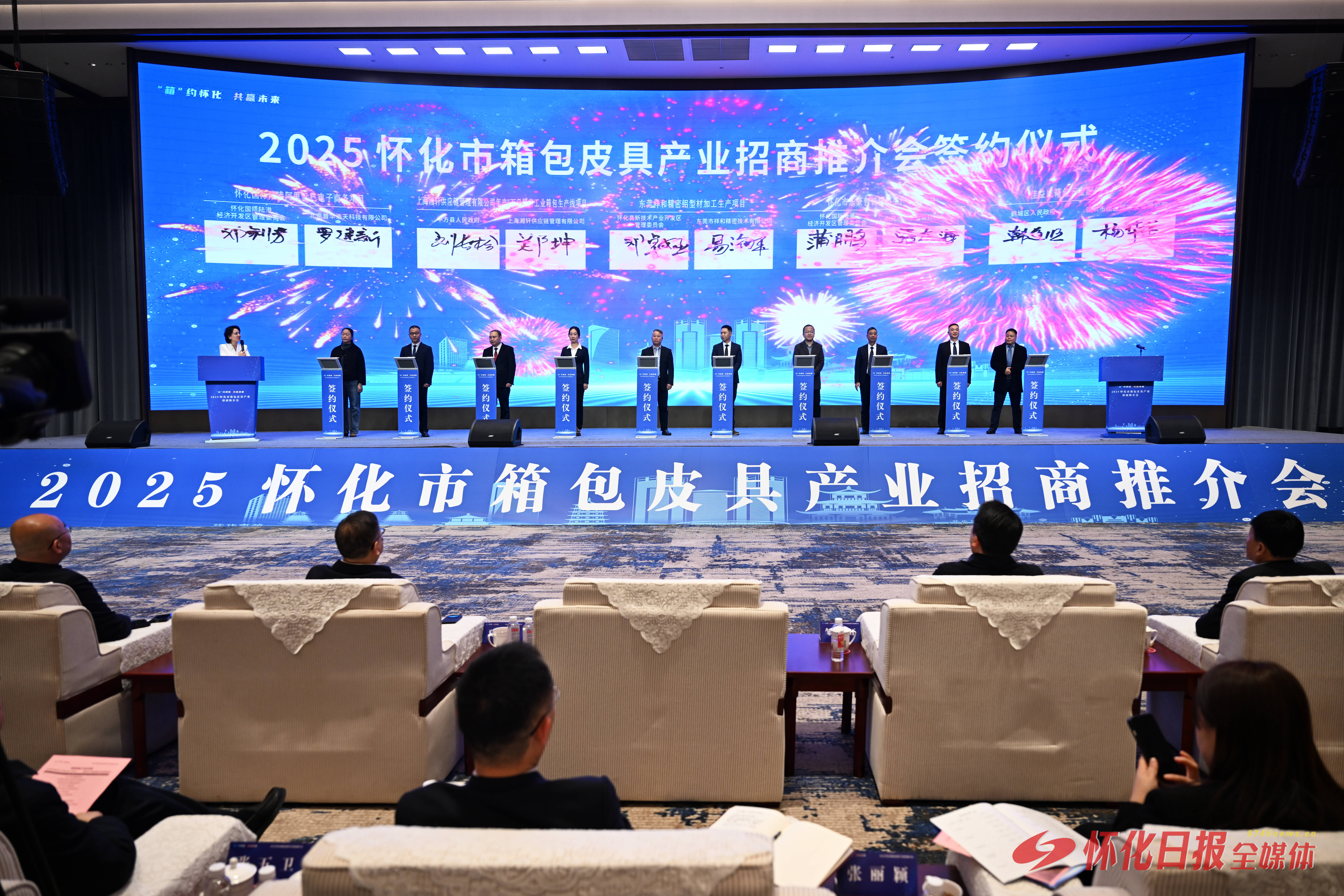 (12月29日下午,2025怀化市箱包皮具产业招商推介会举行。会上举行了项目签约仪式,共签约15个项目。)