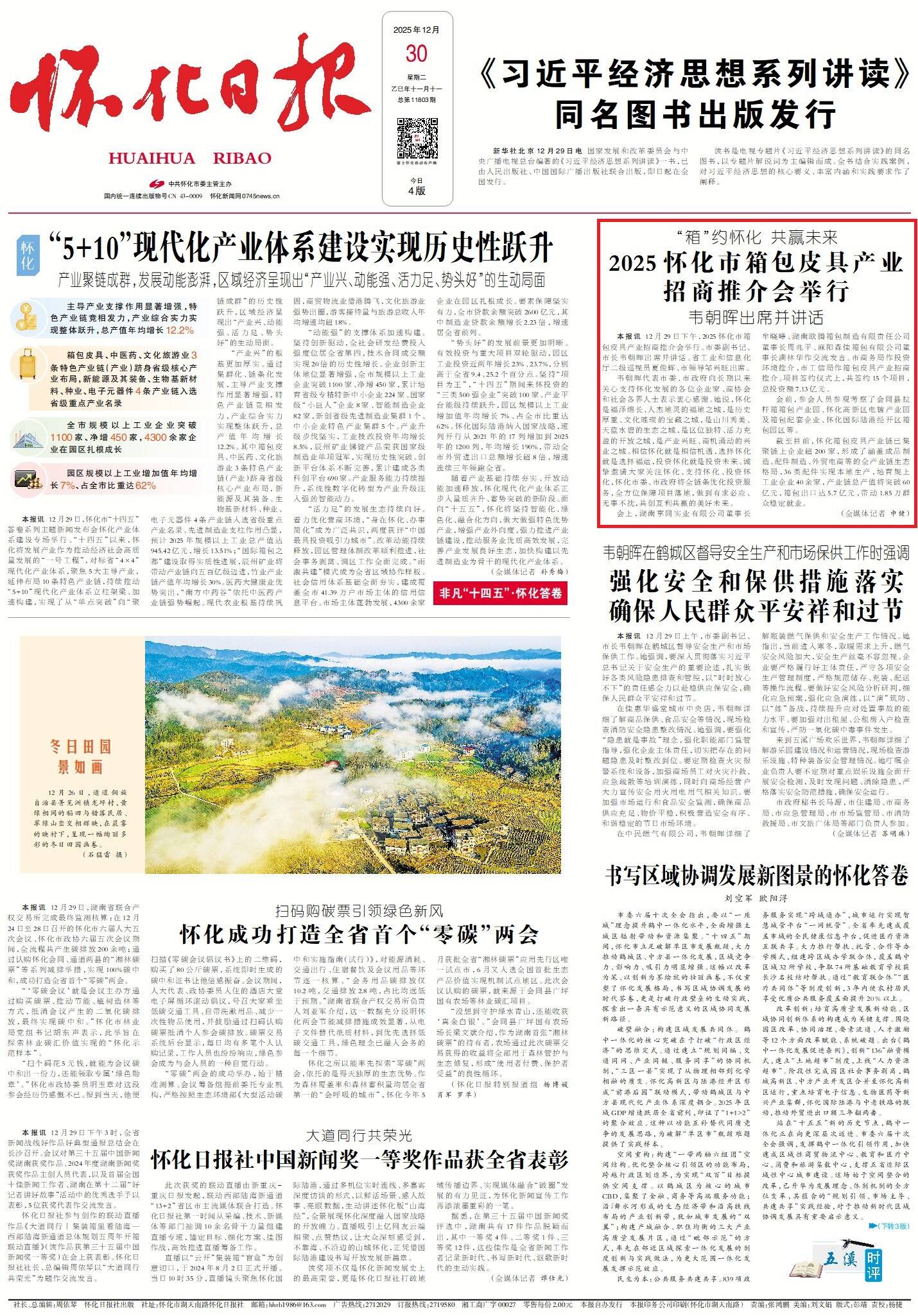 怀化日报全媒体讯12月29日下午,2025怀化市箱包皮具产业招商推介会举行。市委副书记、市长韦朝晖出席并讲话。省工业和信息化厅二级巡视员夏俊辉、市领导邹兴旺出席。